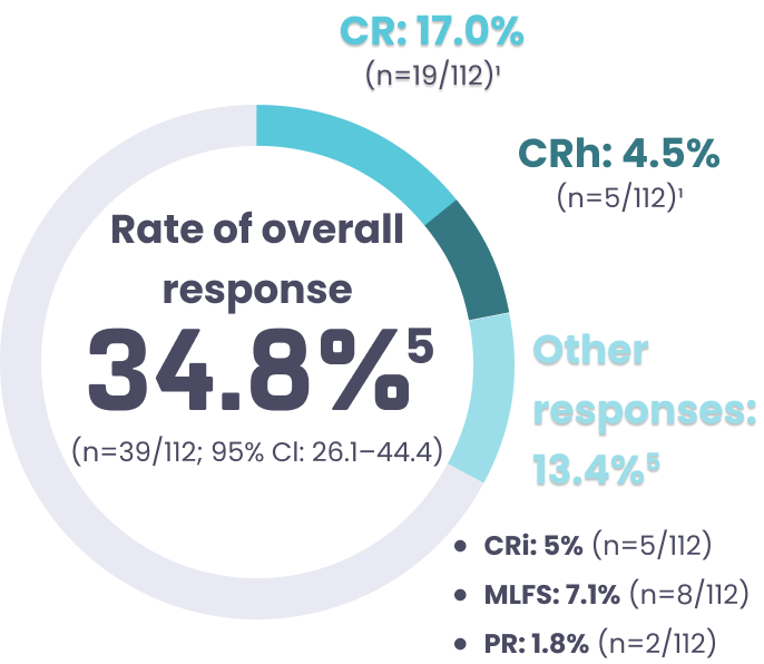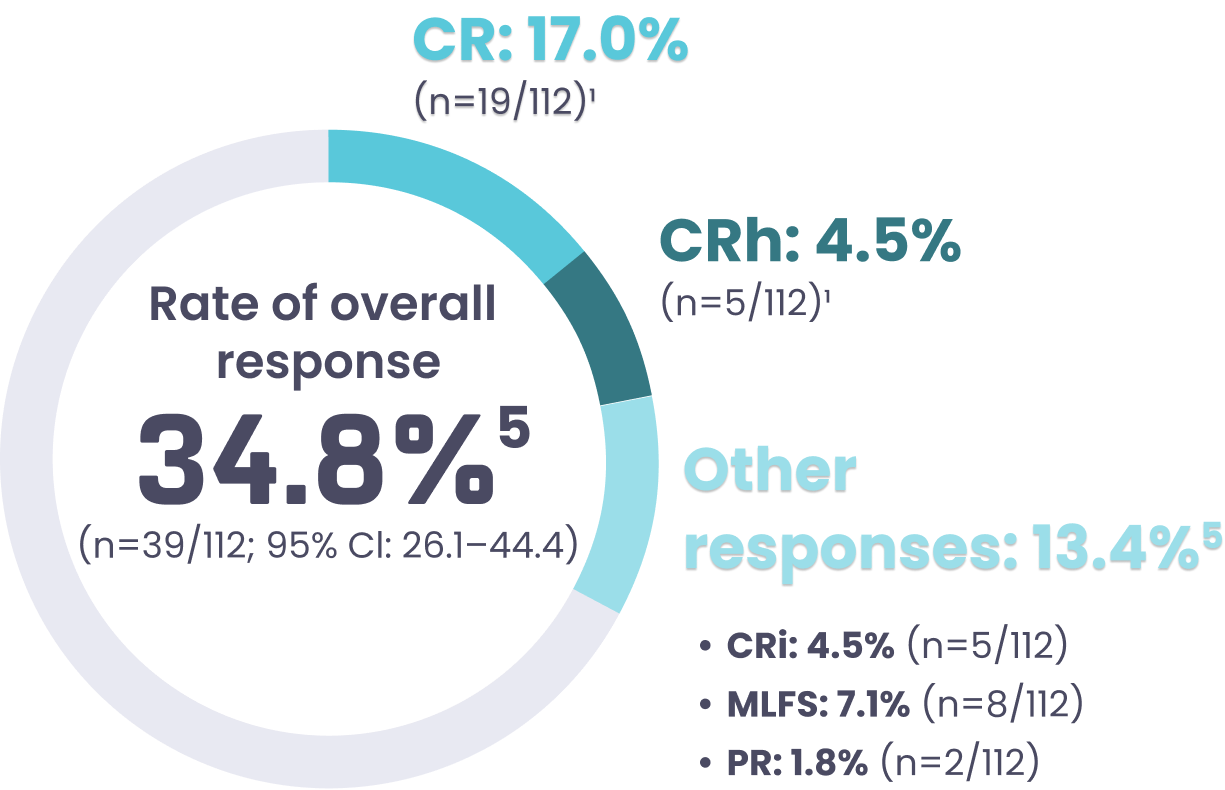 References: 1. KOMZIFTI [Prescribing Information]. San Diego, CA; Kura Oncology, Inc. 2. Wang ES et al. J Clin Oncol. 2025 Nov;43(31):3381-3390. 3. Wang ES et al. J Clin Oncol. 2025 Nov;43(31)(suppl):3381-3390. 4. Data on File. Zifto 007. San Diego, CA; Kura Oncology, Inc. 5. Data on File. Zifto 001. San Diego, CA; Kura Oncology, Inc. 6. Data on File. Zifto 006. San Diego, CA; Kura Oncology, Inc.7. Data on File. Zifto 003. San Diego, CA; Kura Oncology, Inc. 8. Döhner H et al. Blood. 2022;140(12):1345-1377.